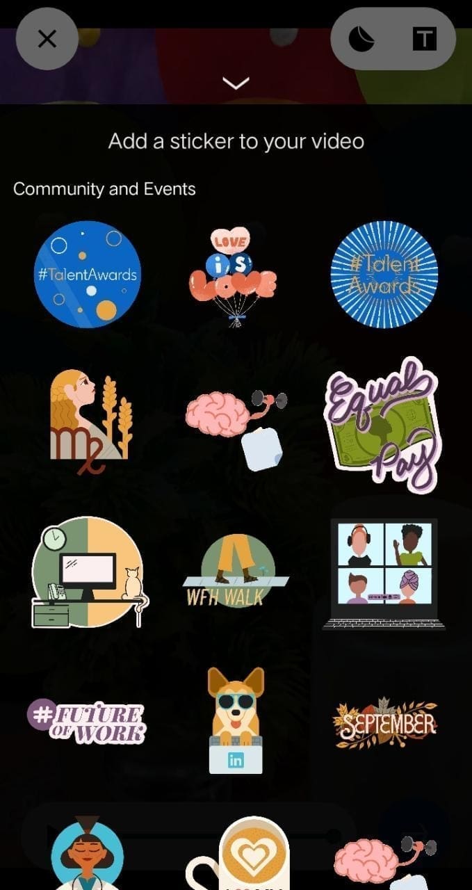- Click on the stickers or text button
