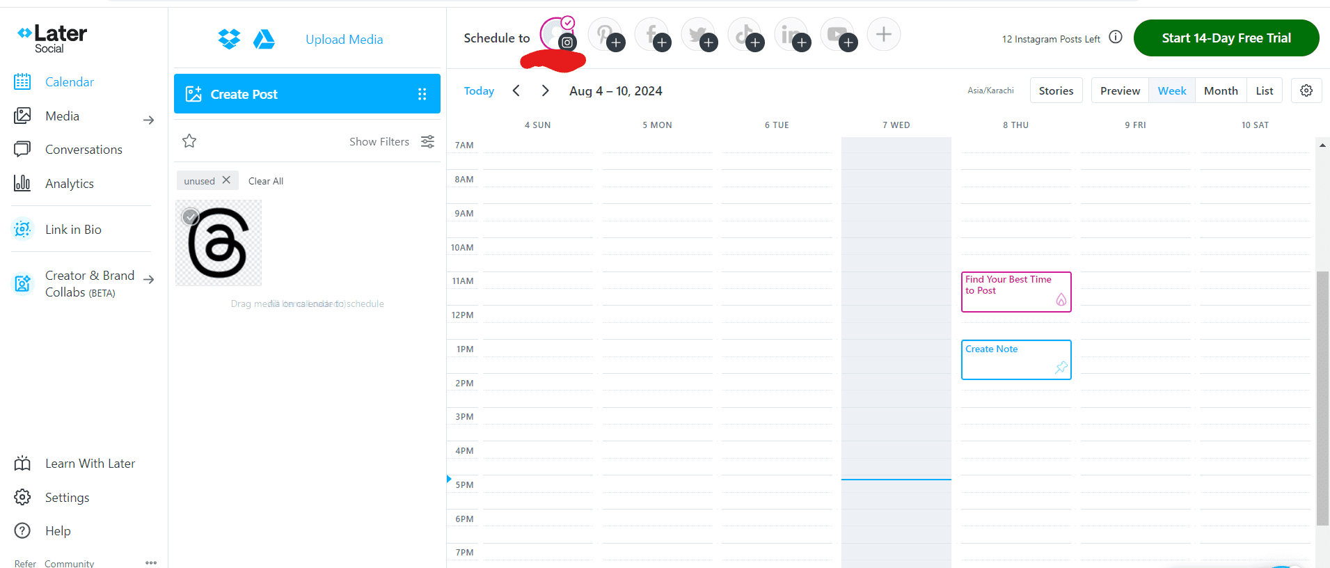 - Scheduling: Schedule posts for Instagram and Facebook, ensuring a consistent presence on these platforms.