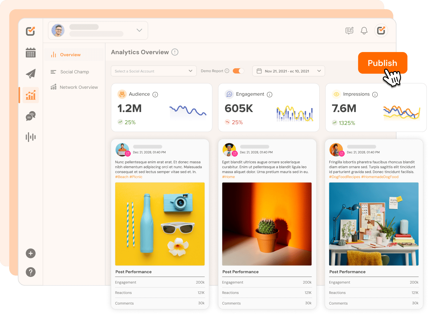 Visualize your social media growth and track essential metrics daily, weekly, monthly, and annually with Social Champ. Make data-driven decisions to refine your strategy and boost performance.