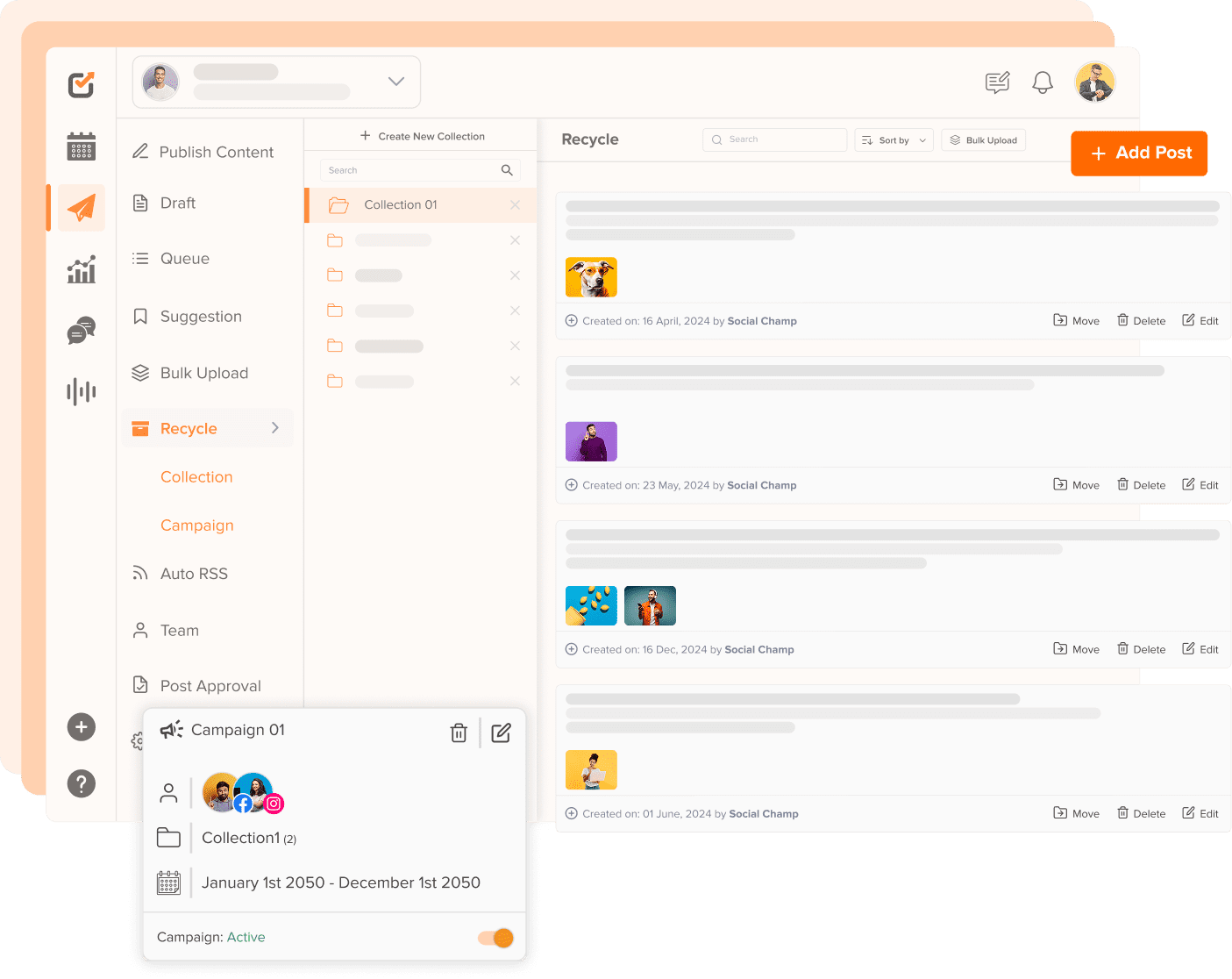 Make your content work harder with Social Champ. Reuse your best posts, save time, and keep your social media active and engaging without the need to create new content from scratch.